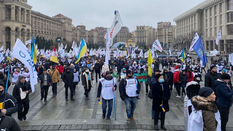 Предприниматели, которые требуют от властей не запрещать им работу во время январского локдауна и не вводить обязательные кассовые аппараты, от Офиса президента дошли до Майдана Независимости. Там они остановились, лидер организации "SaveФОП" анонсировал установку палаточного городка.
